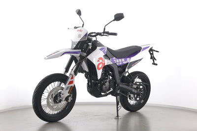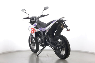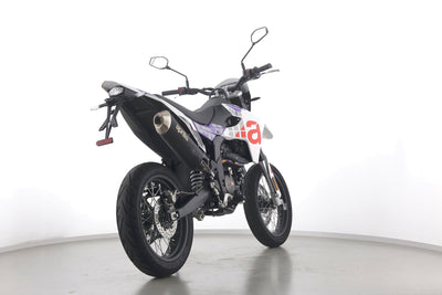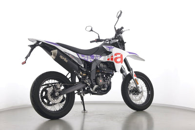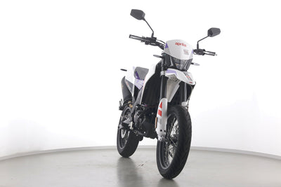 Eine Aprilia SX 125 E5+ in Topzustand u.a. mit Originalausstattung sowie LED-Blinkern und -Rücklicht.