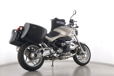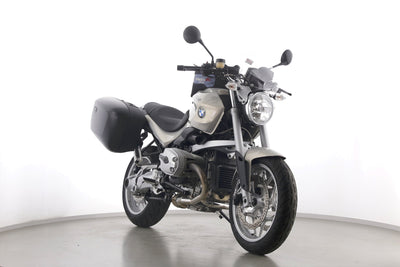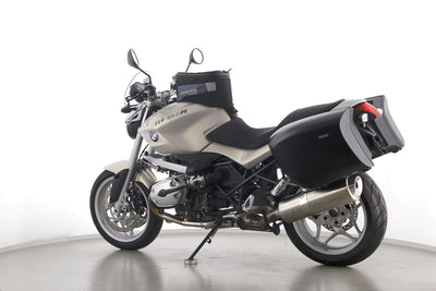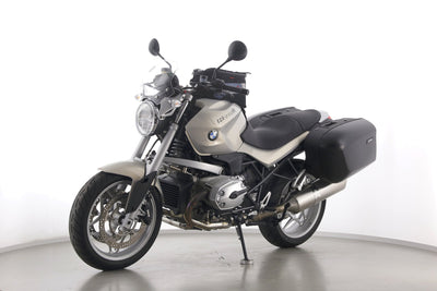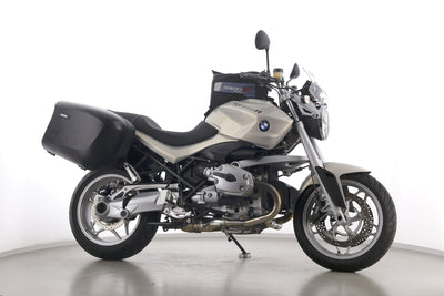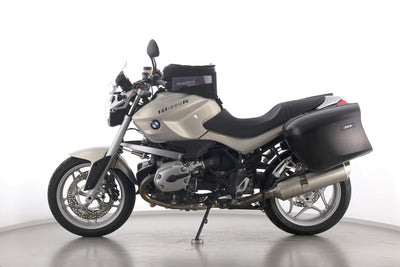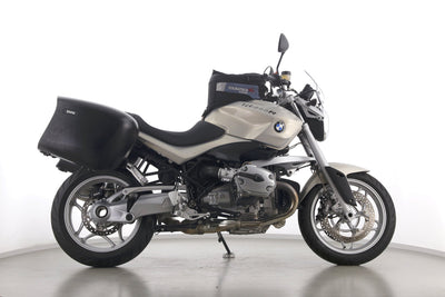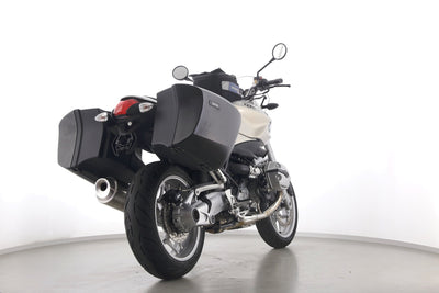 Eine BMW R 1200 R in gepflegtem Zustand u.a. mit BMW-Koffersystem und Touratech-Tankrucksack.