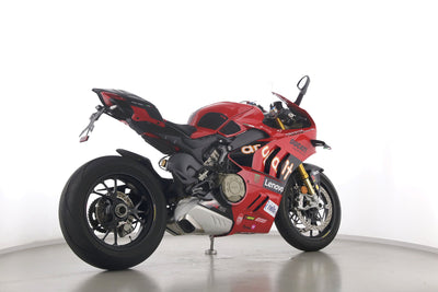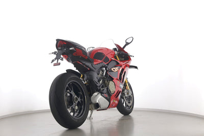 Eine Ducati Panigale V4 S aus zweiter Hand in sehr gepflegtem Zustand u.a. mit Öhlins-Fahrwerk sowie kurzem Kennzeichenhalter von CNC Racing.