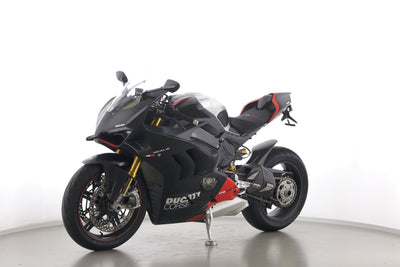 Eine Ducati Panigale V4 SP2 aus erster Hand in gepflegtem Zustand u.a. mit Carbonfelgen und kurzem Kennzeichenhalter.