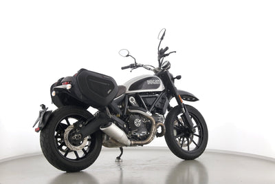 Eine scheckheftgepflegte Ducati Scrambler Icon aus zweiter Hand in gebrauchtem Zustand u.a. mit Originalausstattung sowie SW-Motech-Softbags incl. Innentaschen.