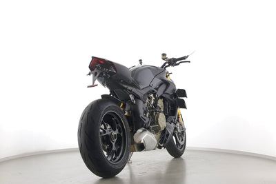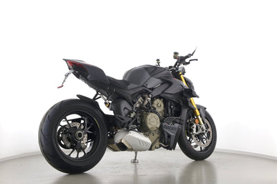 Eine Ducati Streetfighter V4 S aus erster Hand in sehr gepflegtem Zustand u.a. mit kurzem Kennzeichenhalter und Mini-LED-Blinkern.