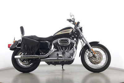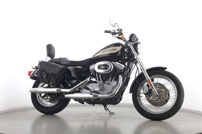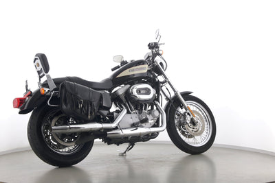 Eine Harley-Davidson Sportster XL 1200 R Roadster in gepflegtem Zustand u.a. mit Sissybar und Lederpacktaschen.