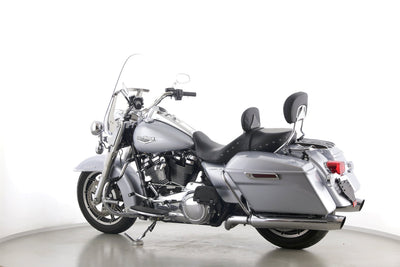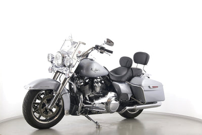 Eine Harley-Davidson Road King FLHR aus zweiter Hand in gepflegtem Zustand u.a. mit Windschild und HD-Koffersystem.
