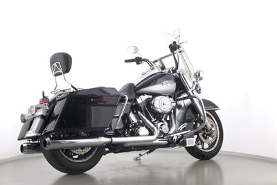 Eine Harley-Davidson Road King Classic FLHRC in gepflegtem Zustand u.a. mit KessTech-V2-Klappenauspuff sowie HD-Koffersystem.