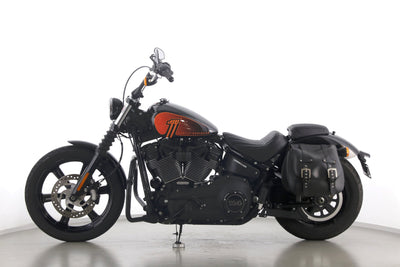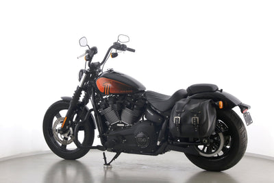 Eine Harley-Davidson Softail Street Bob 114 FXBBS in sehr gepflegtem Zustand u.a. mit Sturzbügel sowie seitlicher Leder-Bobbertasche.