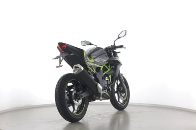 Eine scheckheftgepflegte Kawasaki Z 125 in gepflegtem Zustand u.a. mit kurzem Kennzeichenhalter sowie Custom-Ganganzeige.