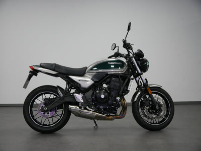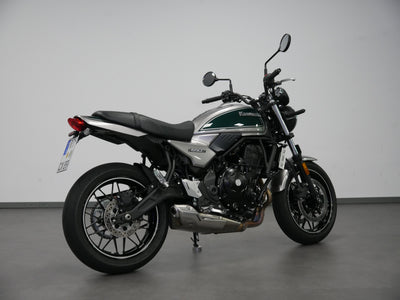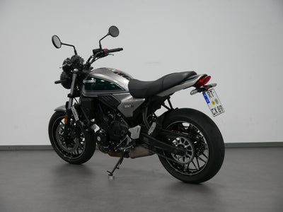Die Z650RS kombiniert Retro-Design mit moderner Technologie. Der klassische Rundscheinwerfer ist mit moderner LED-Technologie ausgestattet, die Instrumente kombinieren analoge Anzeige mit einem Multifunktions-LCD-Display. Das gesamte Erscheinungsbild der Z650RS versprüht den Charme der Siebziger, während im verborgenen moderne Technologie höchsten Fahrspaß garantiert. Das Fahrzeug wird aktuell in unserem Fuhrpark genutzt, daher kann der Kilometerstand abweichen.