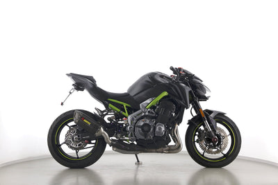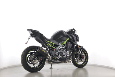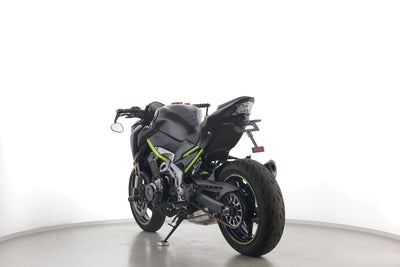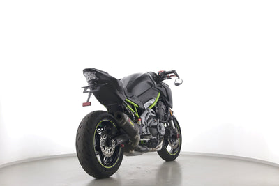 Eine Kawasaki Z 900 in gepflegtem Zustand u.a. mit Akrapovic-Endschalldämpfer sowie kurzem Kennzeichenhalter.
