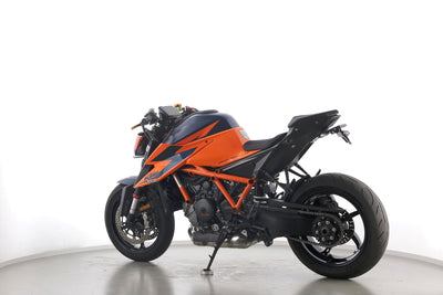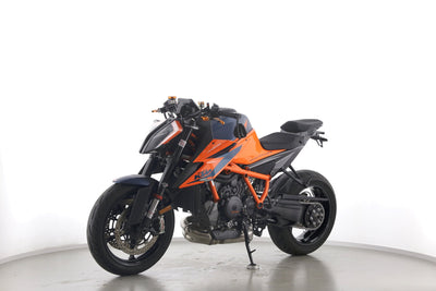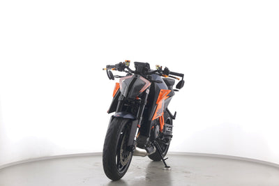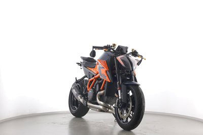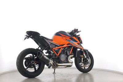 Eine KTM 1290 Super Duke R in sehr gepflegtem Zustand u.a. mit SC-Project-Endschalldämpfer sowie kurzem Kennzeichenhalter.