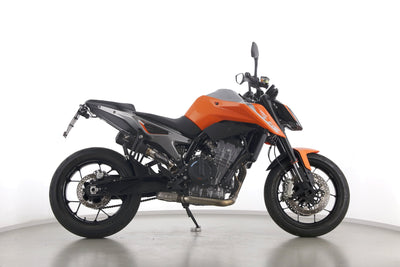 Eine scheckheftgepflegte KTM 790 Duke aus zweiter Hand in sehr gepflegtem Zustand u.a. mit IXRace-Endschalldämpfer sowie Spiegler-Brems- und -Kupplungshebel.