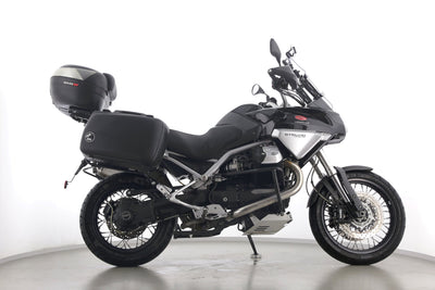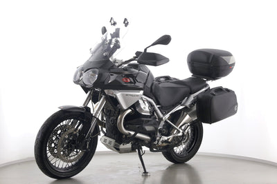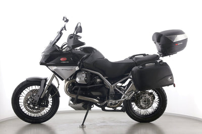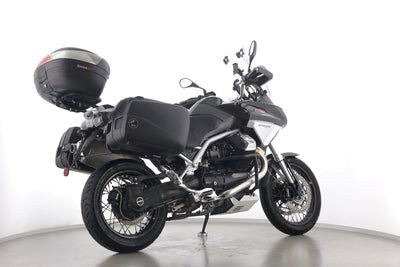Eine Moto Guzzi Stelvio 1200 8V in gepflegtem Zustand u.a. mit Hepco&Becker-Koffern (Junior-Reihe) sowie Shad-Topcase.