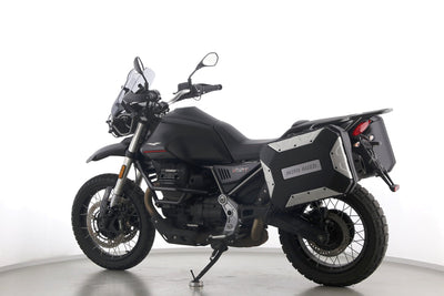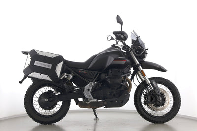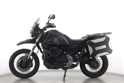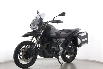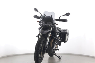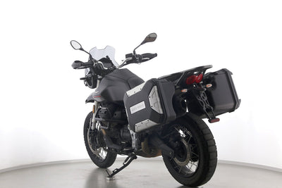 Eine Moto Guzzi V85 TT in gepflegtem Zustand u.a. mit MotoGuzzi-Koffersystem und Sturzbügel.