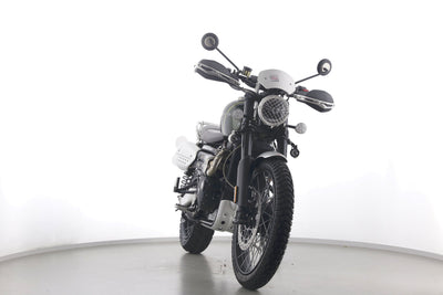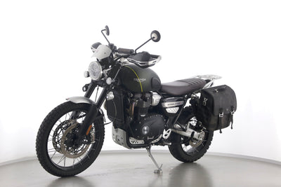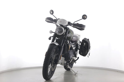Eine scheckheftgepflegte Triumph Scrambler 1200 XC aus erster Hand in gepflegtem Zustand u.a. mit LED Zusatzscheinwerfern sowie Öhlins-Federbeinen.