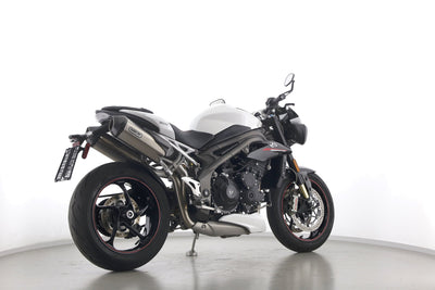 Eine scheckheftgepflegte Triumph Speed Triple 1050 RS aus zweiter Hand in sehr gepflegtem Zustand u.a. mit Arrow-Endschalldämpfer sowie Öhlins-Fahrwerk.