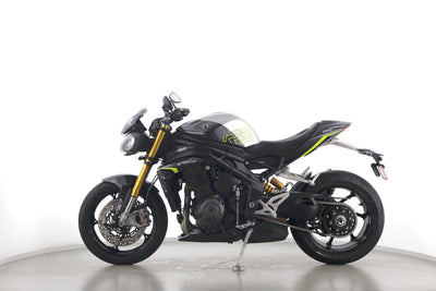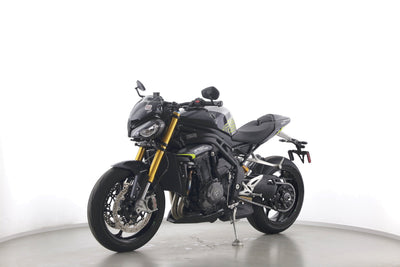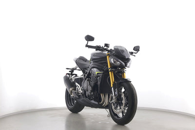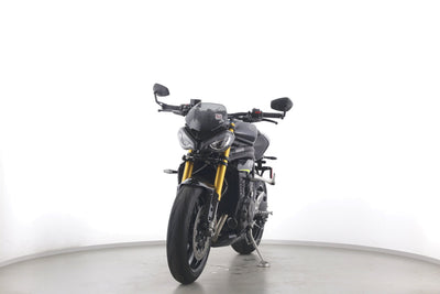 Eine Triumph Speed Triple 1200 RS in Topzustand u.a. mit Akrapovic-Endschalldämpfer sowie Öhlins-Fahrwerk.