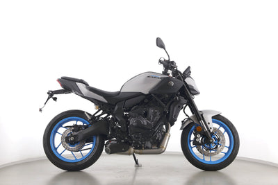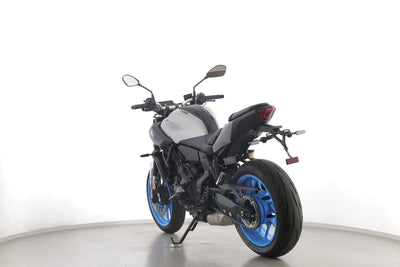Eine Yamaha MT-07 Y-AMT 35 kW als Neufahrzeug u.a. mit Akrapovic-Komplettauspuffanlage und einstellbarer Fußrastenanlage.