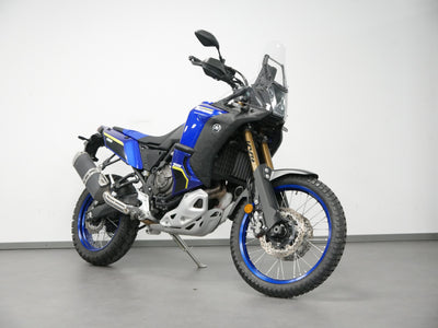 Das Fahrzeug ist gepflegt. Die Yamaha Ténéré 700 World Raid ist eine spezielle Adventure-Version der Ténéré 700 mit Fokus auf Langstrecken und Offroad-Fähigkeiten. Sie verfügt über zwei seitliche 23-Liter-Kraftstofftanks für hohe Reichweiten, ein hochwertiges, einstellbares KYB-Fahrwerk mit Öhlins-Lenkungsdämpfer, ein 5-Zoll-TFT-Display mit Smartphone-Konnektivität und ein dreistufiges, umschaltbares ABS.