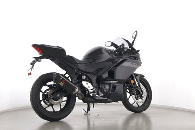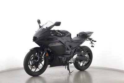 Eine Yamaha YZF-R3 als Neufahrzeug mit umfangreichem Originalzubehörpaket.